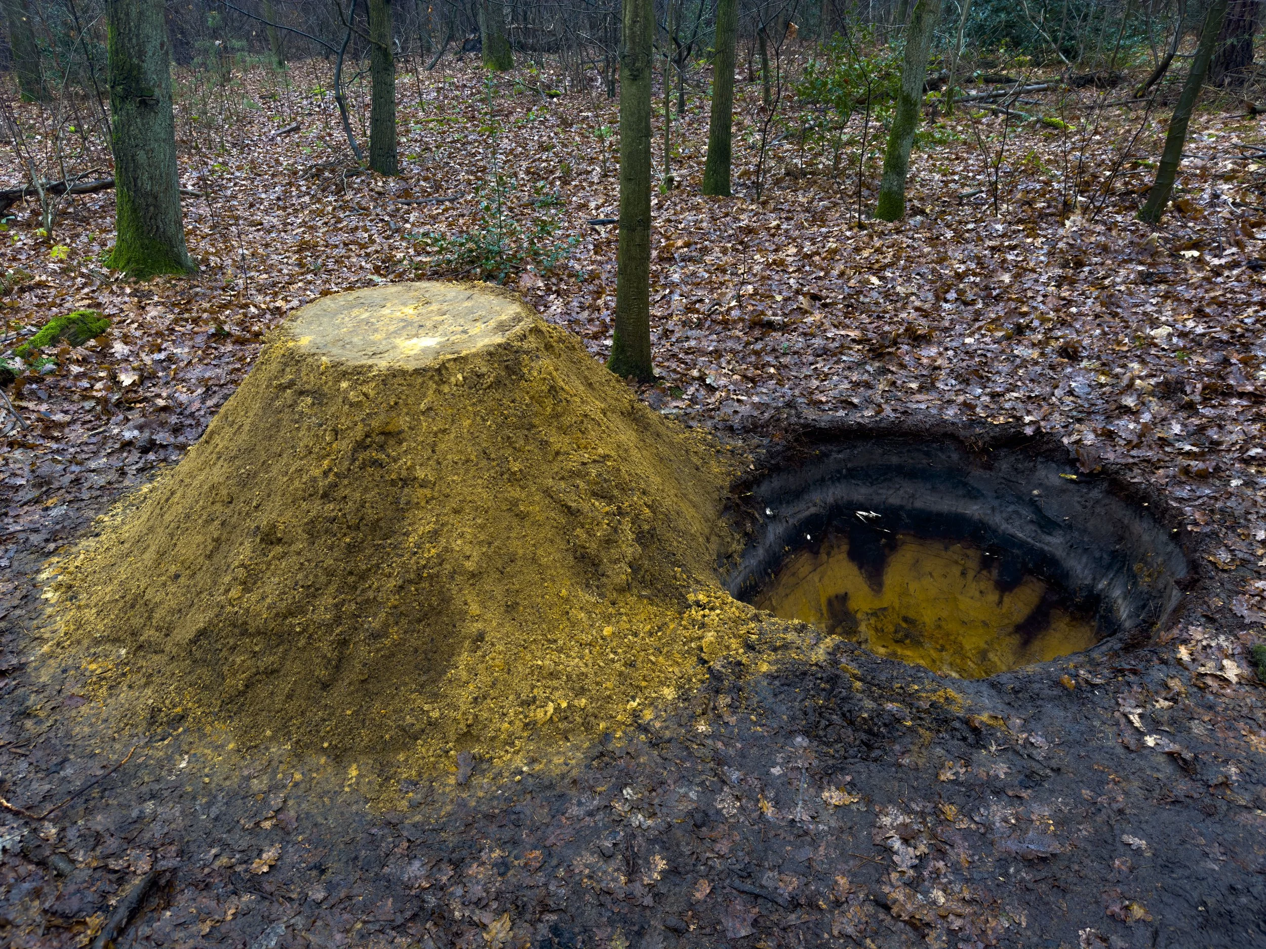 The second mono-ha experiment was about presenting the spontaneous space below a table, when the surface was elevating, Throughout digging and stamping spontaneously