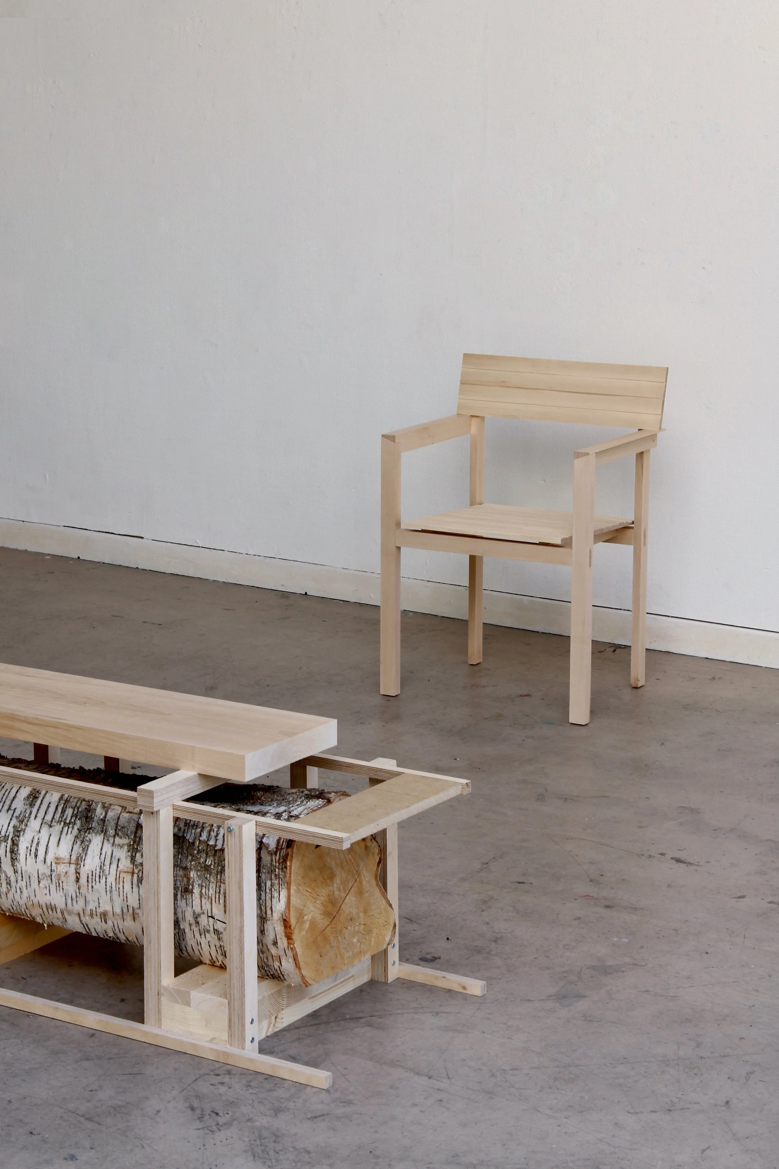 After handling massive planks in the wood workshop, Lu felt a potential threat from the plank, a denatured form given by the wood industry which attempted to plasticise the vitality of wood, he could not perceive the life relationship between the tree and the plank anymore. Through his experimental furniture making, Lu was inspired by the Japanese artistic movement, MONO-HA, bringing back the properties of wood on the stage, which the plank stood, bare and undisguised, wood fibres, the vitality of wood, the death of the tree and so on. Lu tried to invite his audiences to awareness “things” around things, finding beauty in between things,